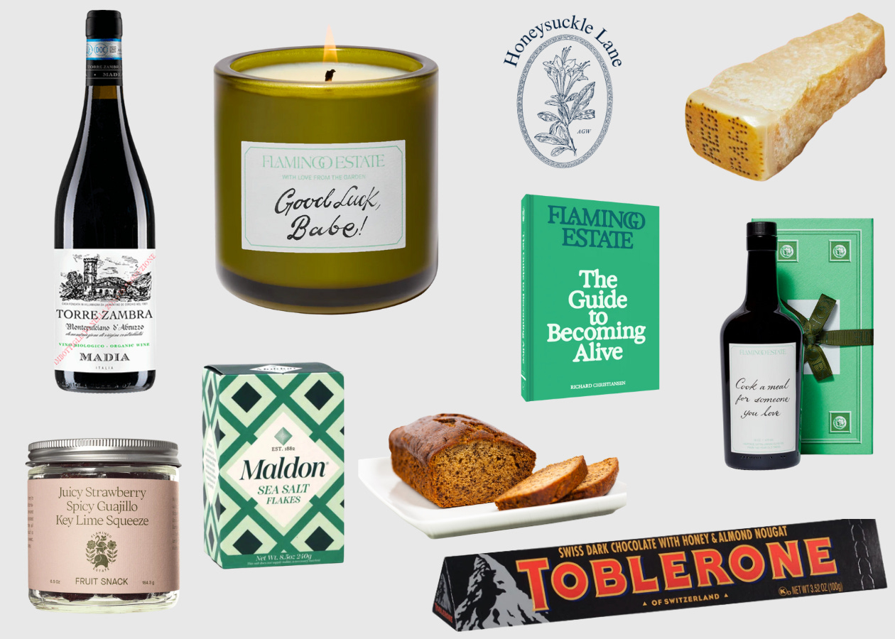 If the party is the kind of party that you may consider a full on gift for, look no further than Flamingo Estate. I have been loving sending their customized olive oil bottles, or personalizing an heirloom tomato candle. Their coffee table book is also epic, and I am so so curious about these strawberry fruit snacks (I simply need to know why they are $80)!